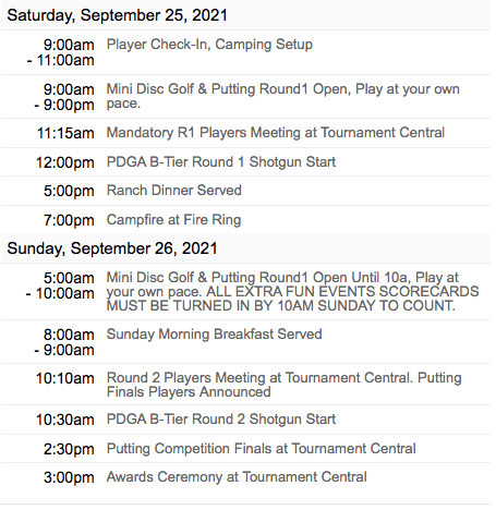 Mini Disc Golf and a Putting Competition will be happening all weekend with half of those entry fees being donated to charity. All extra Fun Events scorecards must be turned in to tournament Central by 10am Sunday morning to count. The Putting Competition will be two rounds. First round is Saturday morning through Sunday morning. The top putting scorecards will advance to the finals and will be announced at the Sunday morning players meeting.