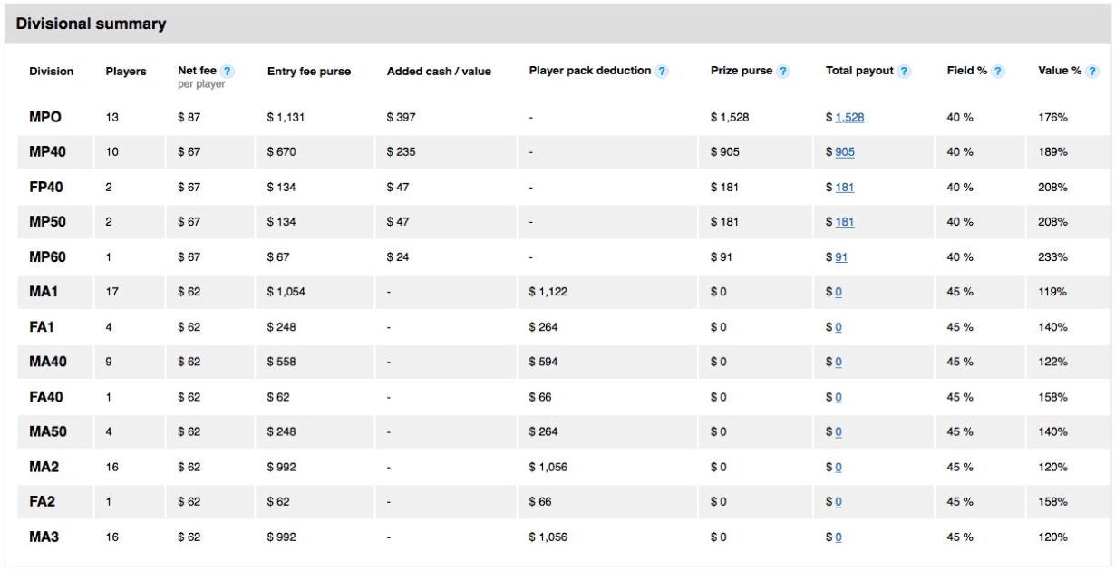 Final players email sent with link to Conrad Meyer photos & PDGA Tournament Feedback and more info.