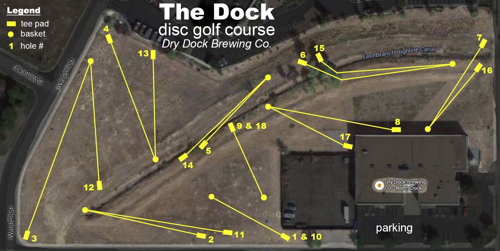You will receive a scorecard during player check-in after registering online. Anyone can play as many extra fun events as they wish, including over and over again to get the best score. Just pay for another round with the TD at tournament central and you will receive another scorecard. All of the extra fun events will be before the first round Saturday morning. The Putting Competition will be two rounds with first round being before Saturday's round, then the finals being played out following the second round Sunday afternoon before the raffle and award ceremony. Those who paid for the Dry Dock Front Nine event during online registration, can use their front nine score when they don't want the fun to stop and pay onsite for the 18 hole event and then just play the back nine holes. So being masters considerate, you don't have to play 27 holes at Dry Dock to compete in both extra fun events there. There is a map for the Dry Dock Brewing disc golf course lower down on this page as well as on the DG Scene and Facebook pages. Half of the extra fun events entry fees will be used for payout, the other half will be donated to charity.